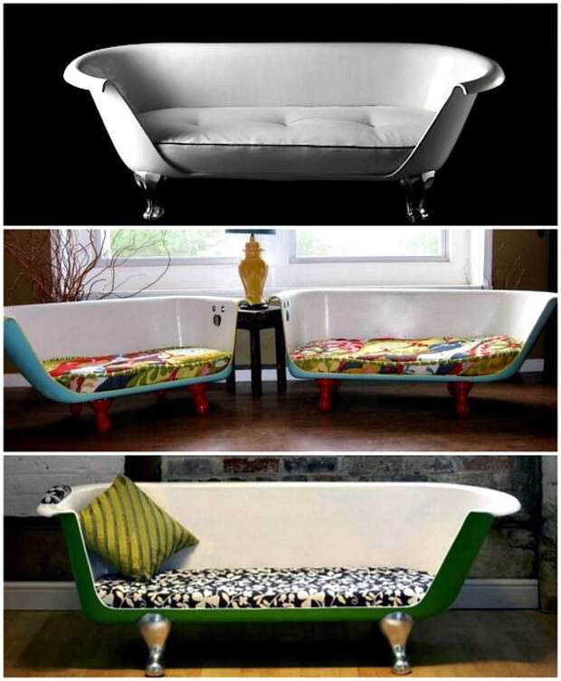Старые чугунные ванны можно использовать для создания оригинальных диванчиков, которые подойдут для обустройства дома и сада. Конечно, такая работа очень трудоемкая, потребуется инструмент и определенные навыки, однако в конечном итоге вы получите уникальный предмет мебели.