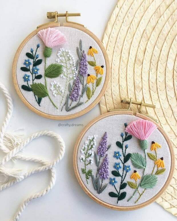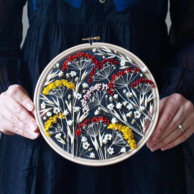 Нежная ботаническая вышивка с засушенными цветами от Olga Prinku