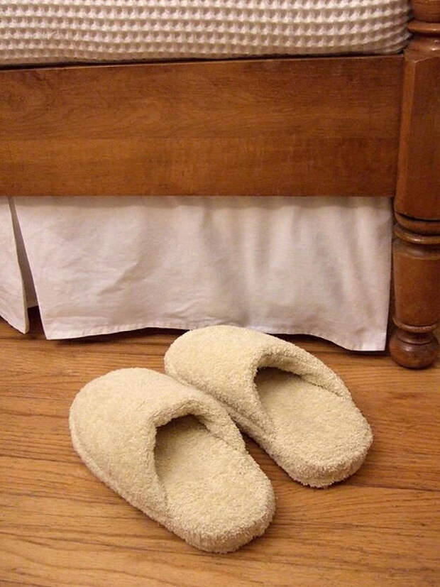 Эти тапочки сделаны из ненужного полотенца, а в основе подошвы — подошва от шлёпанцев.