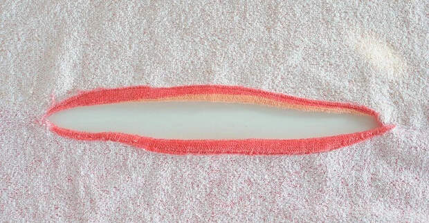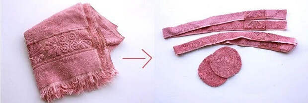 Из полотенца вырежьте 2 круга и обрежьте полоски по краям.
