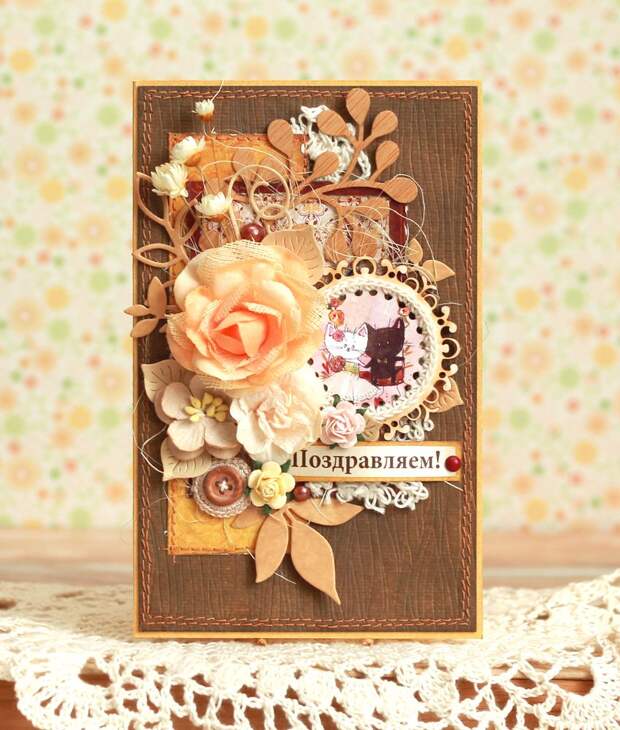 Из материалов нам понадобится: заготовка из картона (лучше, чтобы он имел шероховатую поверхность, у меня с текстурой льна), спица или крючок для вязания, любимые дистресс-чернила.