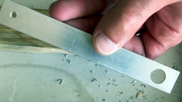 Отрезаем от алюминиевой пластины шириной 2 см заготовку необходимой длины.