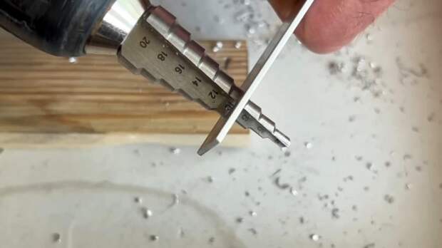 На краях заготовки по срединной линии намечаем центры и сверлим отверстия, отступив от одного конца 1 см, диаметром 0,4 см, а от другого – 1,5 см и диаметром 1,2 см.