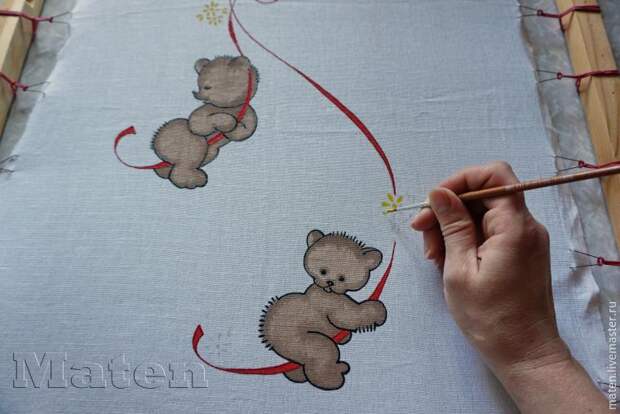 Совет: акриловые краски при высыхании создают на ткани некоторый слой, поэтому ткань в этом месте становится более плотная. Чтобы наше изделие не стояло колом, рекомендую не прокрашивать поверхность в несколько слоев.