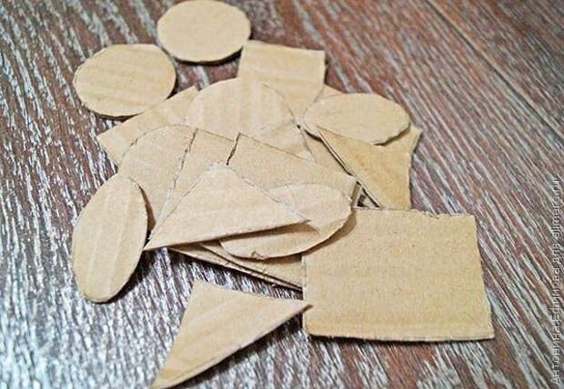 Теперь обклеиваем картонные фигуры цветной бумагой.