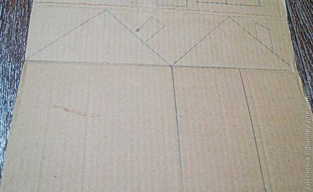 Затем я вырезала нарисованные заготовки. Вот мои домики. Как видите, каждый из них имеет разный уровень сложности конструирования. ;) Один состоит из трех частей (домика, крыши и трубы), другой — уже из четырех.