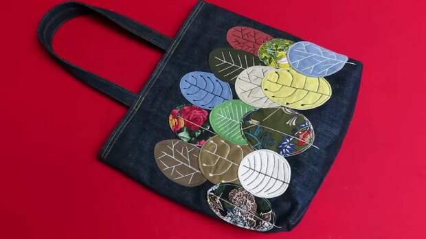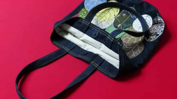 Сшейте по верхнему краю, затем — по нижнему, оставляя место для выворачивания. Пройдитесь ещё раз строчкой сверху по лицевой стороне, чтобы закрепить. В конце установите магнитную кнопку для сумки.Нетривиальное использование разных лоскутков ткани и джинсов! Получается классная сумочка. Можно использовать как шоппер.
