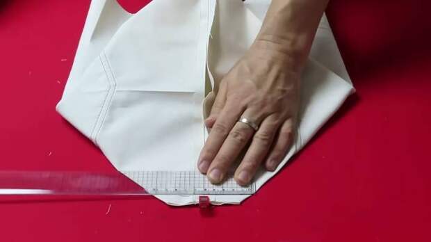 Почти готово! Возьмите ткань для подкладки (шифон, сатин, вискоза, атлас, шёлк и т. д.) вырежьте 2 детали 40*39 см. Также подрежьте углы по 5 см. Отступите и сшейте на машинке.