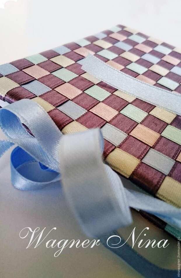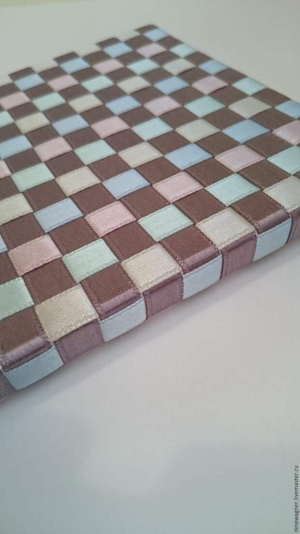 Вот такая получилась симпатичная плетеная обложка. Вы всегда можите просчитать колличество ленточек для вашего размера обложки, это важнодля того, чтобы края обложки выглядели закончено.