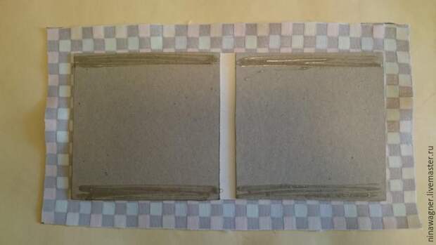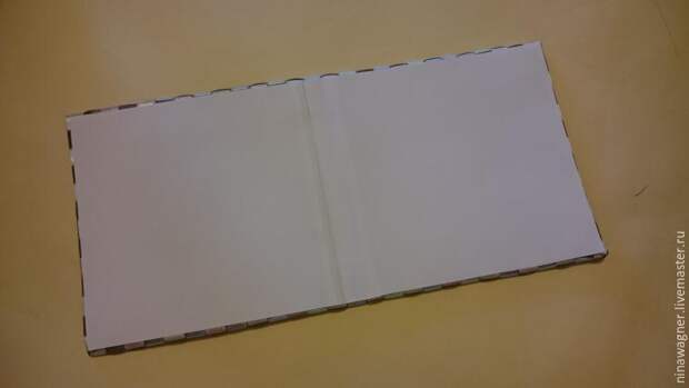 Берем 2 квадрата из картона 13*13 см, по середине соединяем полоской бумаги. Расстояние между обложками 8 мм.