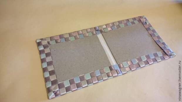 А затем ,всем нам известным способом (полотняного переплетения ) пропускаем чередуя через ряд наш челнок через ленточки.