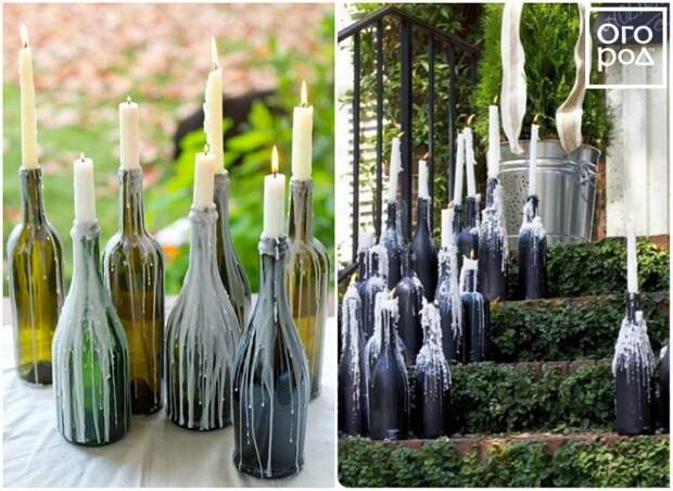 Без особых хитростей и дополнительных аксессуаров винная бутылка станет оригинальным подсвечником для тонких свечек.