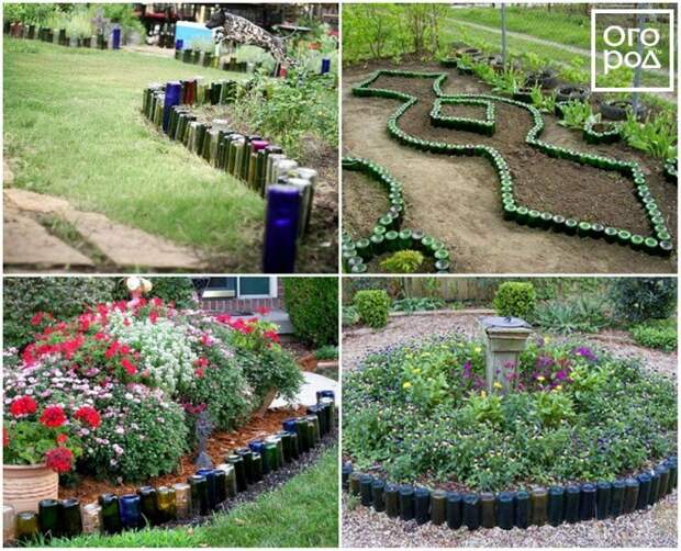Причем стекло может быть любого цвета. Также можно использовать бутылки из-под шампанского.1. Бордюры и бортики для клумбы