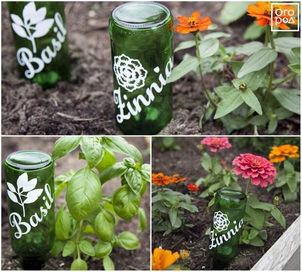 Просто приклейте к стеклу надпись с названием растения или нарисуйте опознавательный узор и воткните тару в землю рядом с нужной культурой.