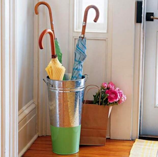 Тут лучше всего использовать небольшие ведерки, поврежденные только с внешней стороны. Покрасьте их, как вам нравится, добавьте виниловых наклеек, а дальше размещайте в них что душе угодно: кухонные или канцелярские принадлежности, журналы и газеты, банные аксессуары, мелочи для рукоделия, карточки, монетки и многое другое.