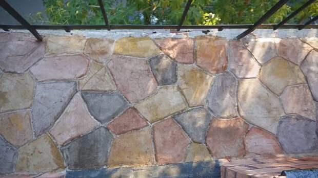 «Кирпичи» из цемента покрасить грунтовкой с колером. Цвет может быть любым.