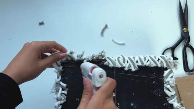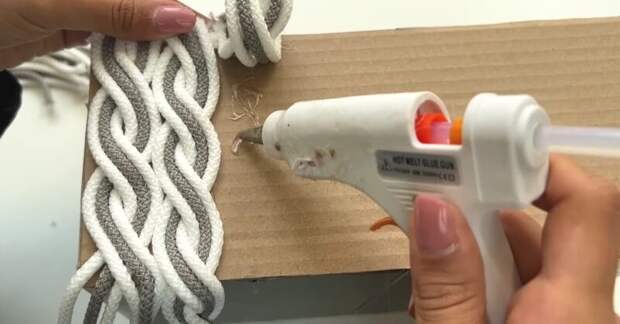 Излишки шнура срежьте. Свободные концы зафиксируйте на основании с помощью горячего клея.