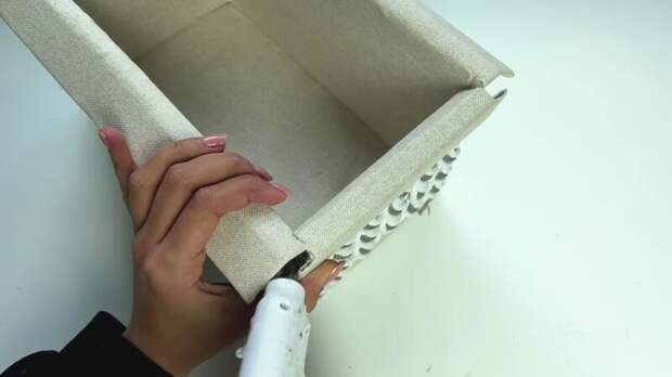 Скрепите бортики между собой, и работа по созданию эффектной корзины для хранения будет завершена.