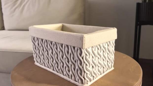 Потратив минимум времени, и взяв для работы бюджетные материалы, можно сделать красивую корзину для хранения. Используя эту идею, получится сделать корзину абсолютно любого размера: все зависит от того, какая коробка будет выбрана в качестве основы.