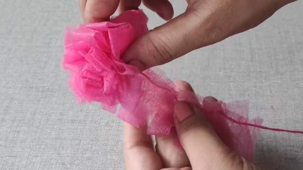 А теперь — самое интересное! Начните сворачивать полоску, расправляя и распушая края.