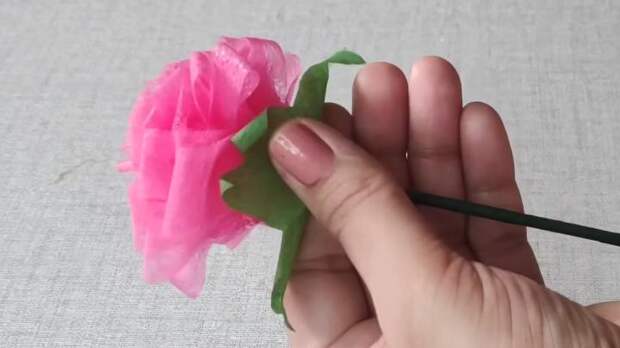 Из бумаги вырежьте чашелистик. Наденьте на палочку и приклейте. Также не забудьте про листочки!