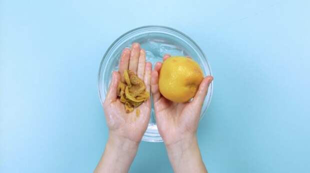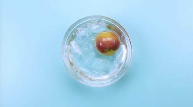 Затем помещаем фрукт в ледяную воду на 1 минуту.