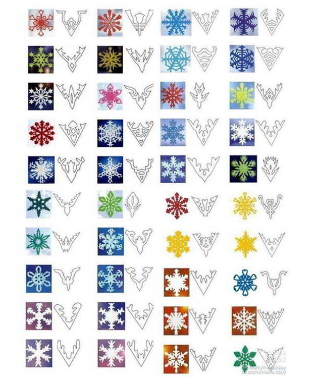 Вы найдете разные интересные идеи снежинок. Для изготовления снежинок понадобится бумага белая или цветная, карандаш и ножницы. А главное немного фантазии и интересные идеи для вдохновения.