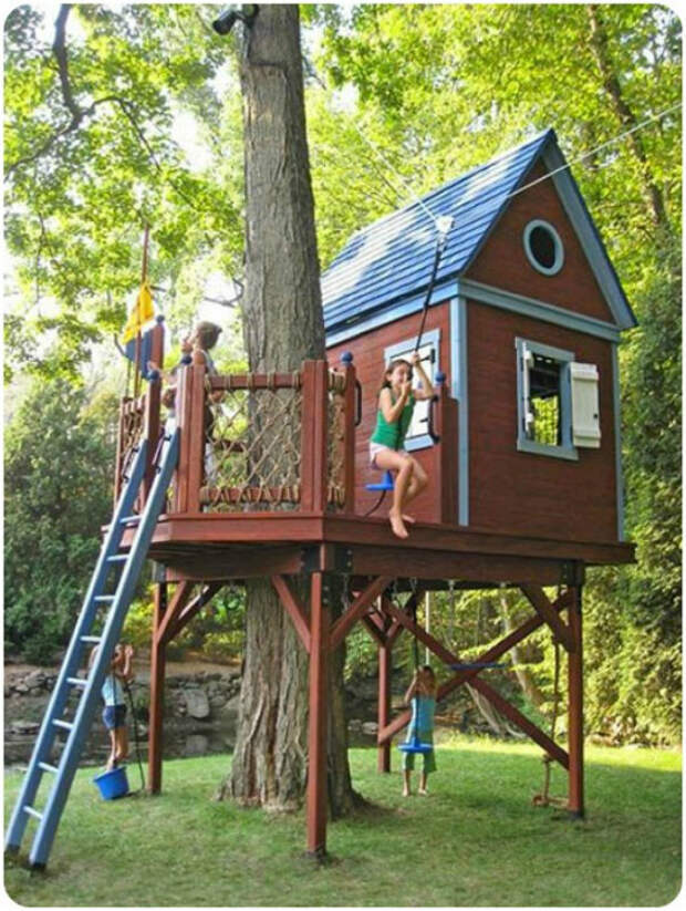 Каждый ребенок мечтает о собственном домике на дереве. Почему бы не реализовать эту идею летом. Даже самая простая конструкция порадует ребенка и украсит дачный участок.