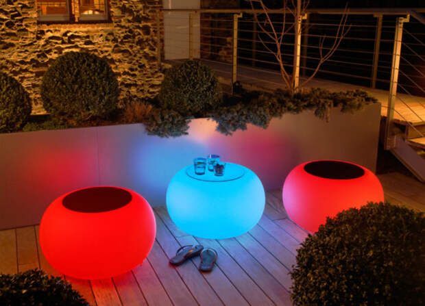 Фантастическая светящаяся мебель идеально подойдет для веселых летних вечеринок на свежем воздухе.