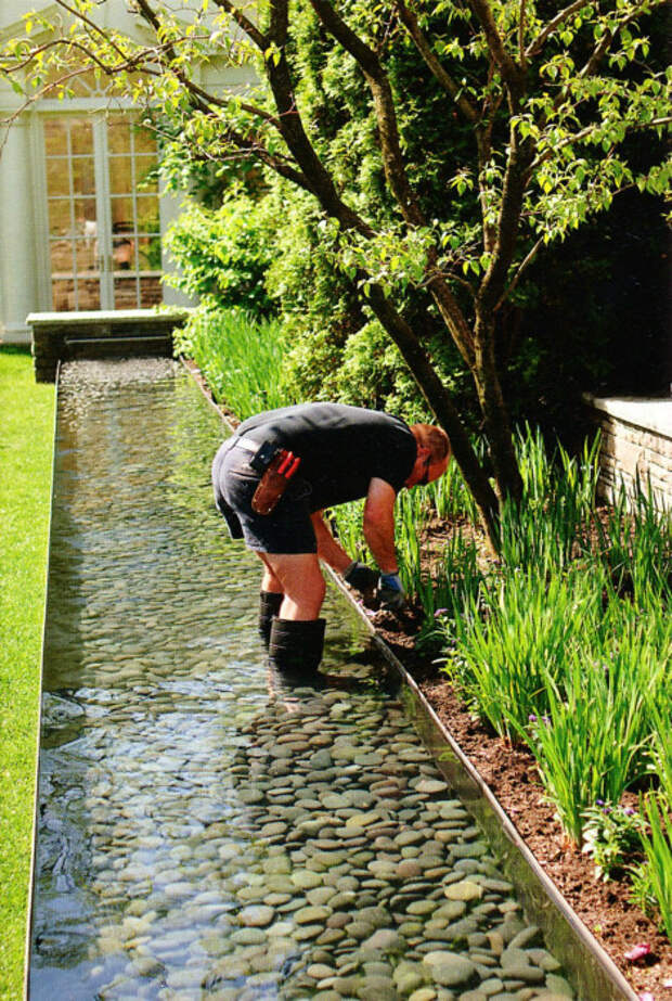 Небольшой рукотворный ручей на дачном участке - оригинальная альтернатива декоративным прудам и фонтанам.