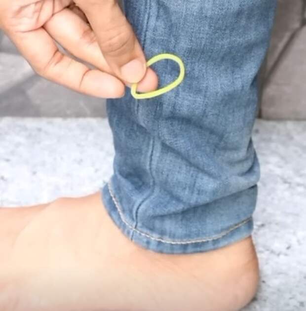 Натяните резинку на джинсы. Поднимите джинсы до необходимой длины, заворачивая ткань.
