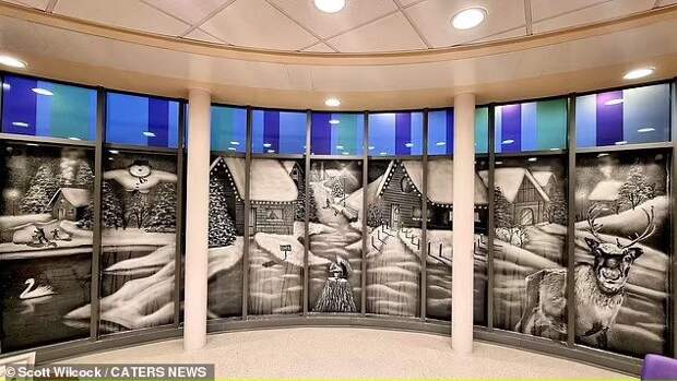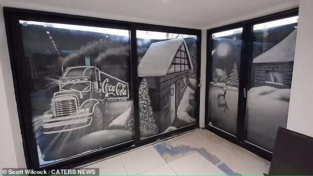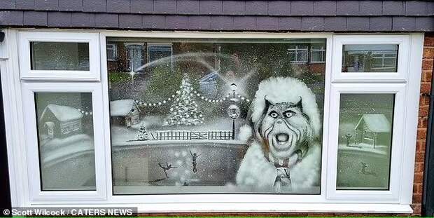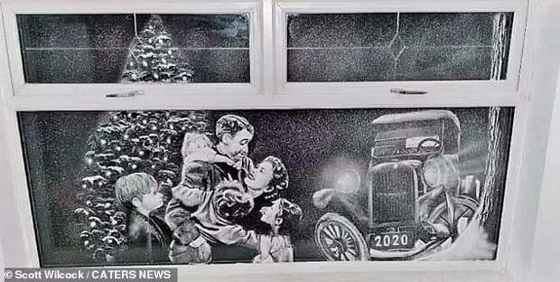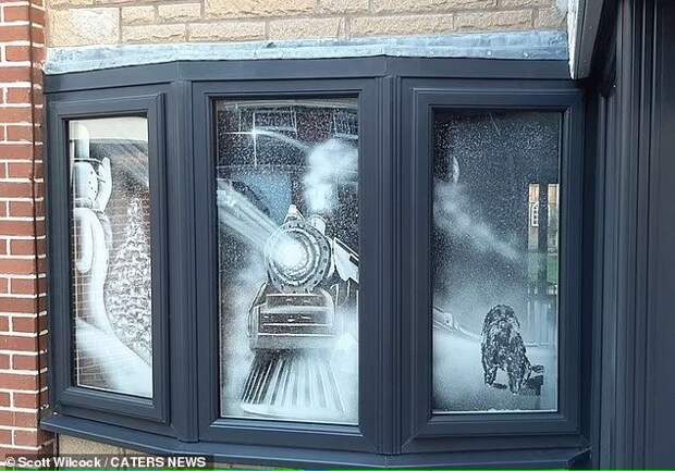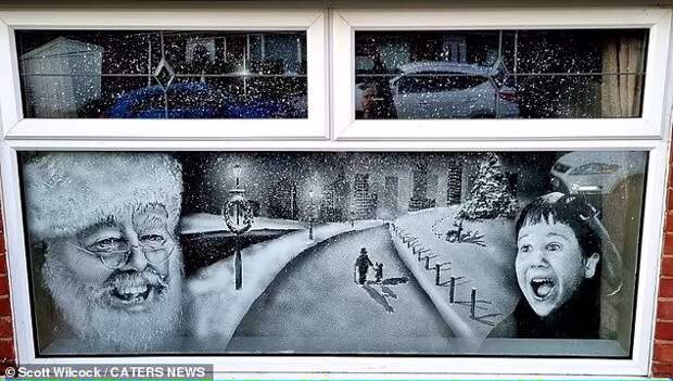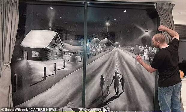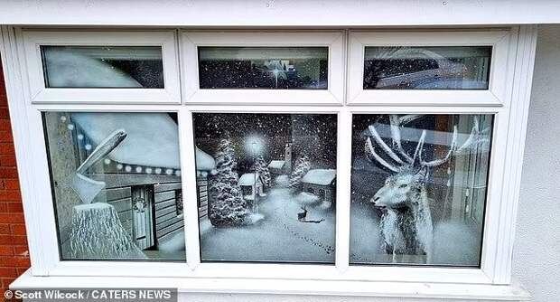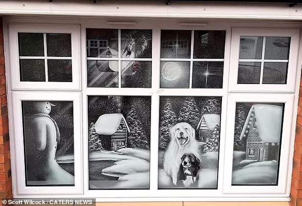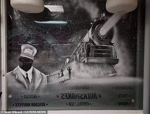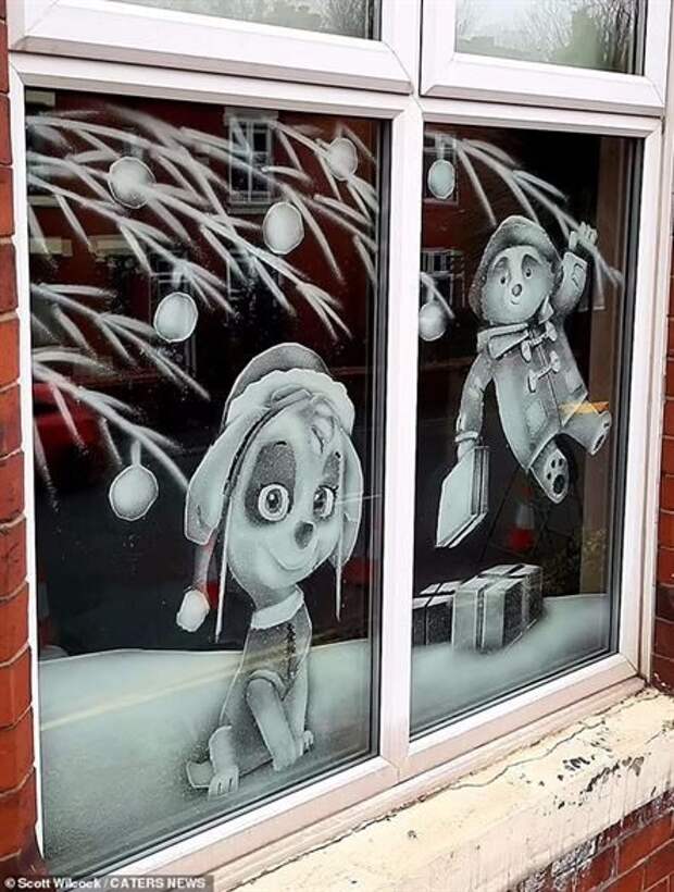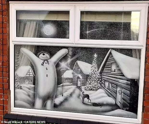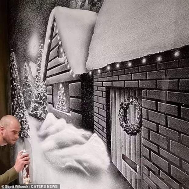 34-летний Скотт Уилкок (Scott Wilcock) из города Уиган создаёт на окнах и витринах потрясающие произведения искусства с помощью баллончиков с искусственным снегом.