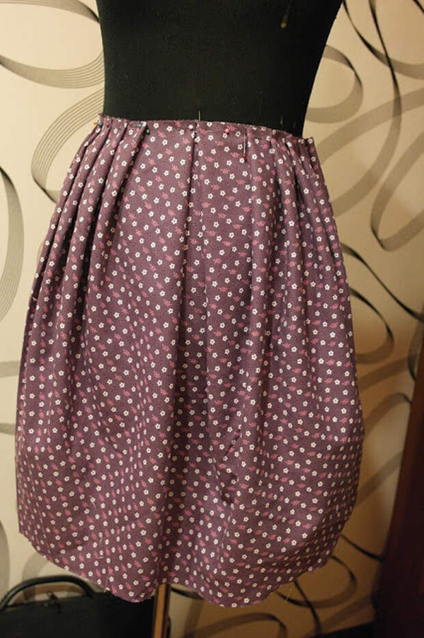 Одеваем на манекен, скалываем юбку и подъюбник.