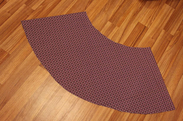 Сначала я хотела обычную юбку полусолнце со складками. Раскроила на ткани.