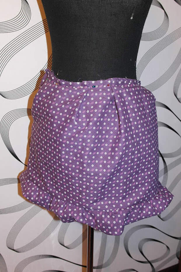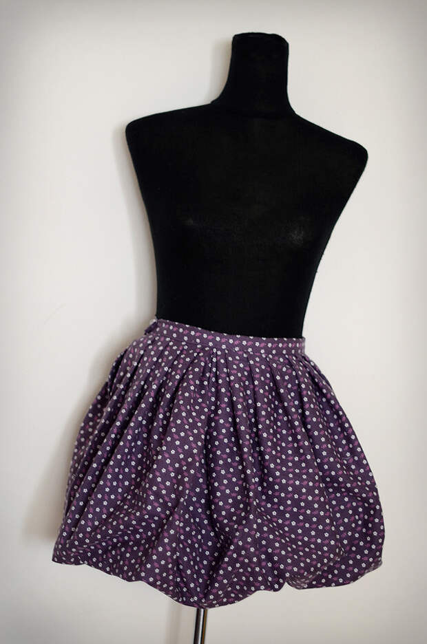 Длину выбрала 45 см, малый радиус даже не замеряла, просто сделала максимально возможный на этой ткани. Когда одела ее на манекен, мне показалась довольно скучно, поэтому я ее перевернула как юбку тюльпан.