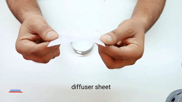 Приклеиваем на большое кольцо диск 125 мм. На мелкие же наклеиваем матовый пластик, который послужит рассеивателем.