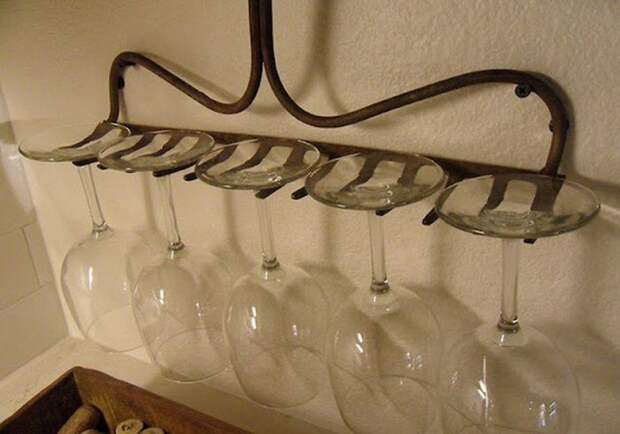 4. Грабли — держатели винных бокалов