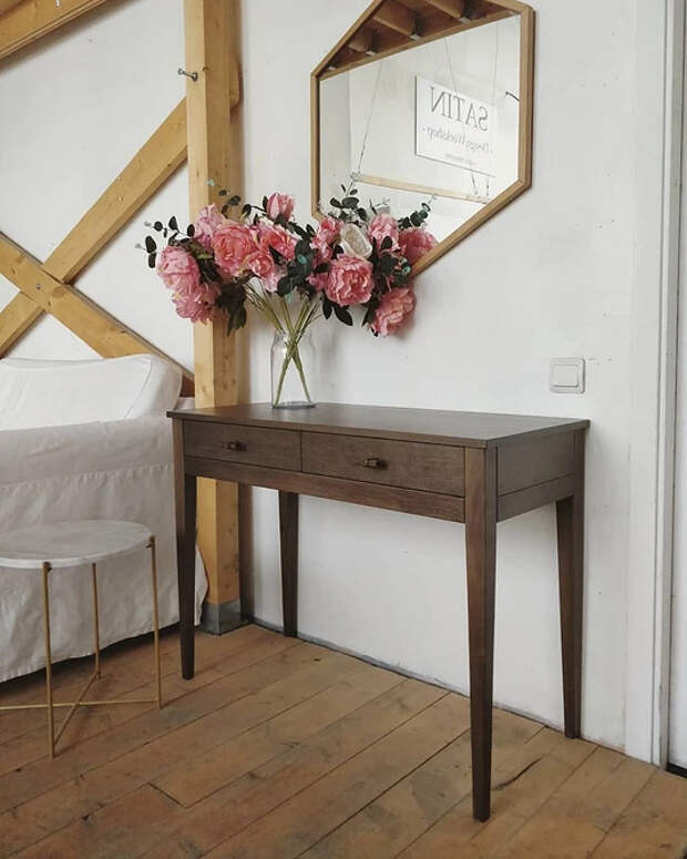 Эта инструкция, как сделать туалетный столик своими руками, пригодится для поклонников неоклассического и современного стилей. Дизайн зависит от формы ножек и последующего декора.