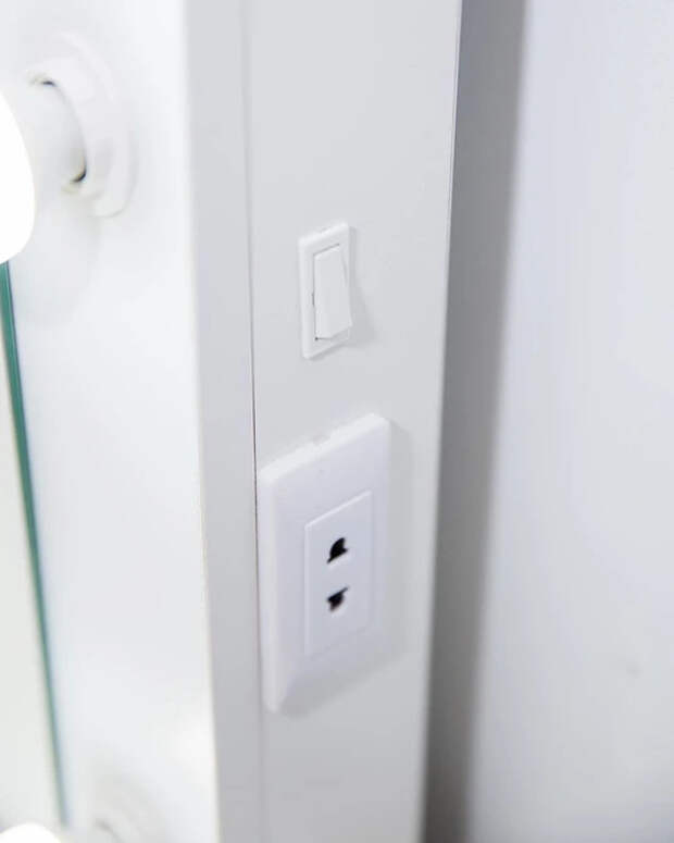 Более простой способ изготовления зеркала с подсветкой — с помощью светодиодной ленты. Её можно наклеить по периметру рамы. Обратите внимание: LED-ленту подключают к блоку питания.